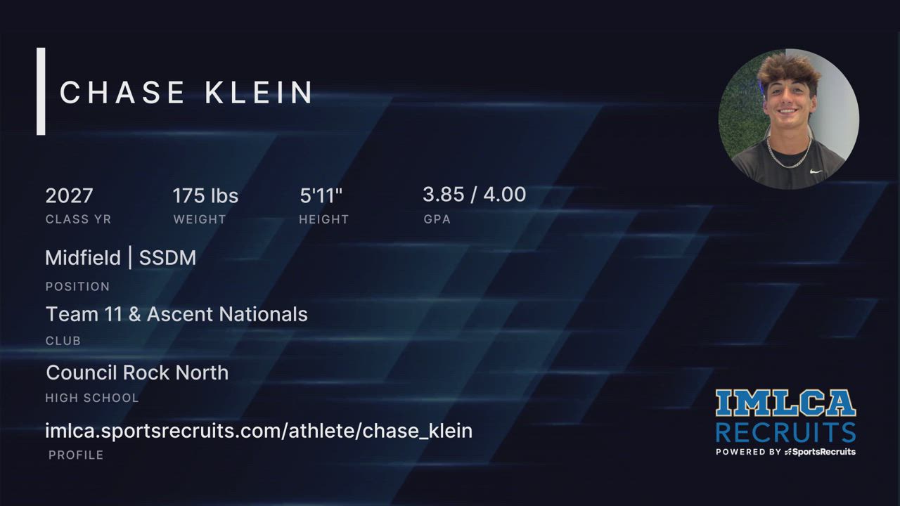 Team 11 & Ascent Nationals | Council Rock North 27’ | Midfield | Multi-sport athlete (Wrestling) | 3.85 GPA