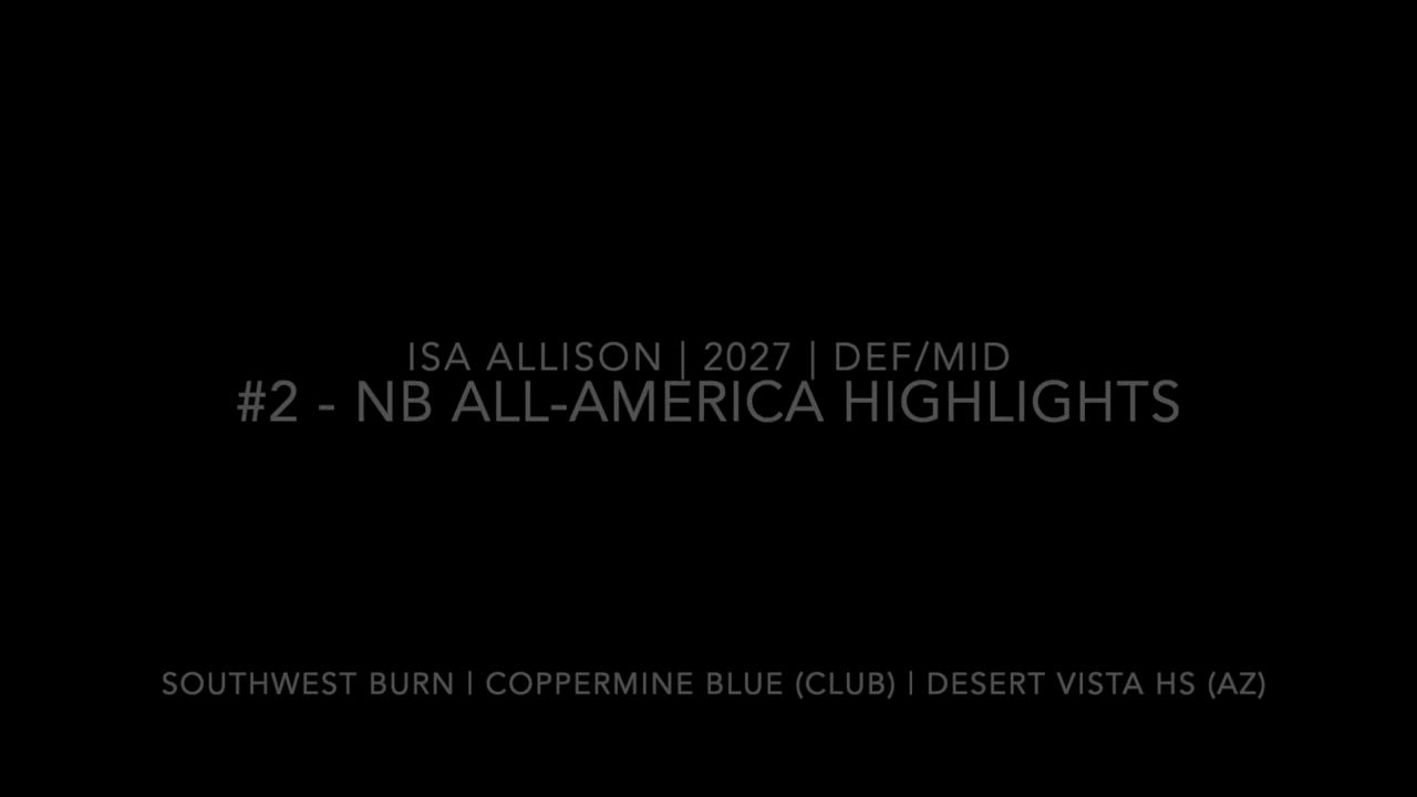 NB All-America 2025 Highlights | Named to Honorable Mention Team | Isa Allison | #2 | Defender/Midfield | 2027 • High-motor defender with strong field awareness and aggressive-but-clean play • 1v1 stops, recovery hustle, off-ball IQ, and transition clears • Played all three days with teammates from AZ, CO, CA, IL, UT, MD — limited prep but high competition • NB All-America selection (2025)