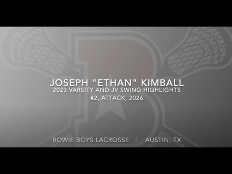 Bowie Boys Lacrosse 2024 Pre-District Highlights Joseph "Ethan" Kimball #2 Grad Year: 2026 Position: Attack Secondary Position: Midfielder In-Season Lacrosse : Bowie Boys Lacrosse | Austin, TX Select Travel Lacrosse: UNRL Texas 2026 Contact: ethankimball1019@gmail.com Instagram: @ethankimball._