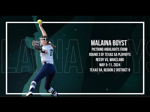 Malaina Boyst (2027) Pitching Highlights Reedy vs. Wakeland - 5A Area Playoffs Round 3 5A Region II District 9 Pitched Complete Game Shutout, 7 Innings in Game 2 RHP/3B GPA: 4.71 Dual Sport Athlete - Softball and Volleyball May 9 - 11, 2024