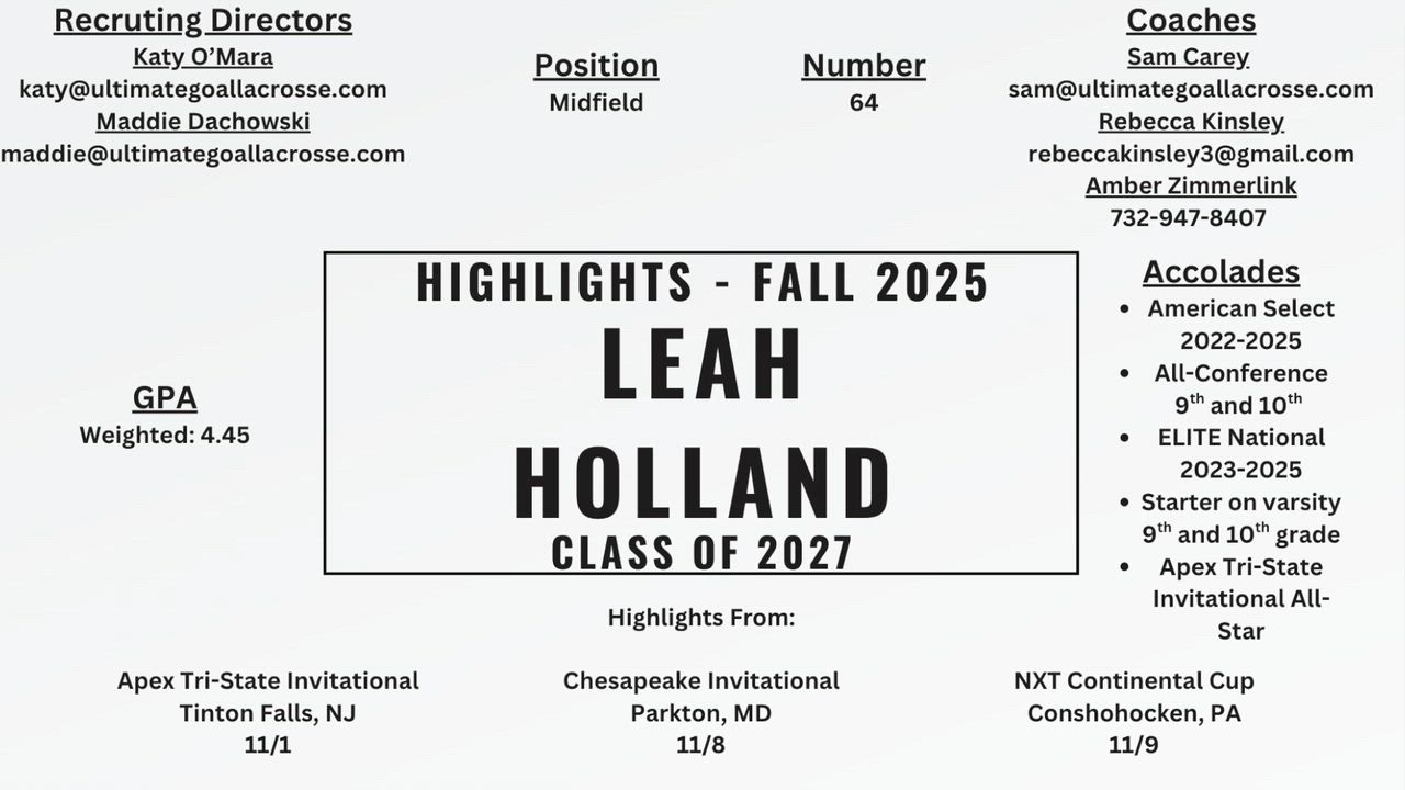 Contact Info: mackenziewalker41@gmail.com Instagram: @mackenziewalkerlax Edited by Billy Clouse