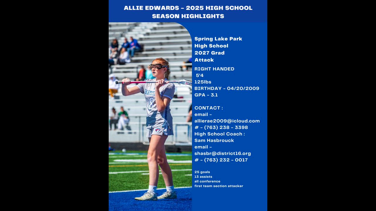 25 goals 13 assists 17 ground balls Varsity letter All conference All section first team attacker