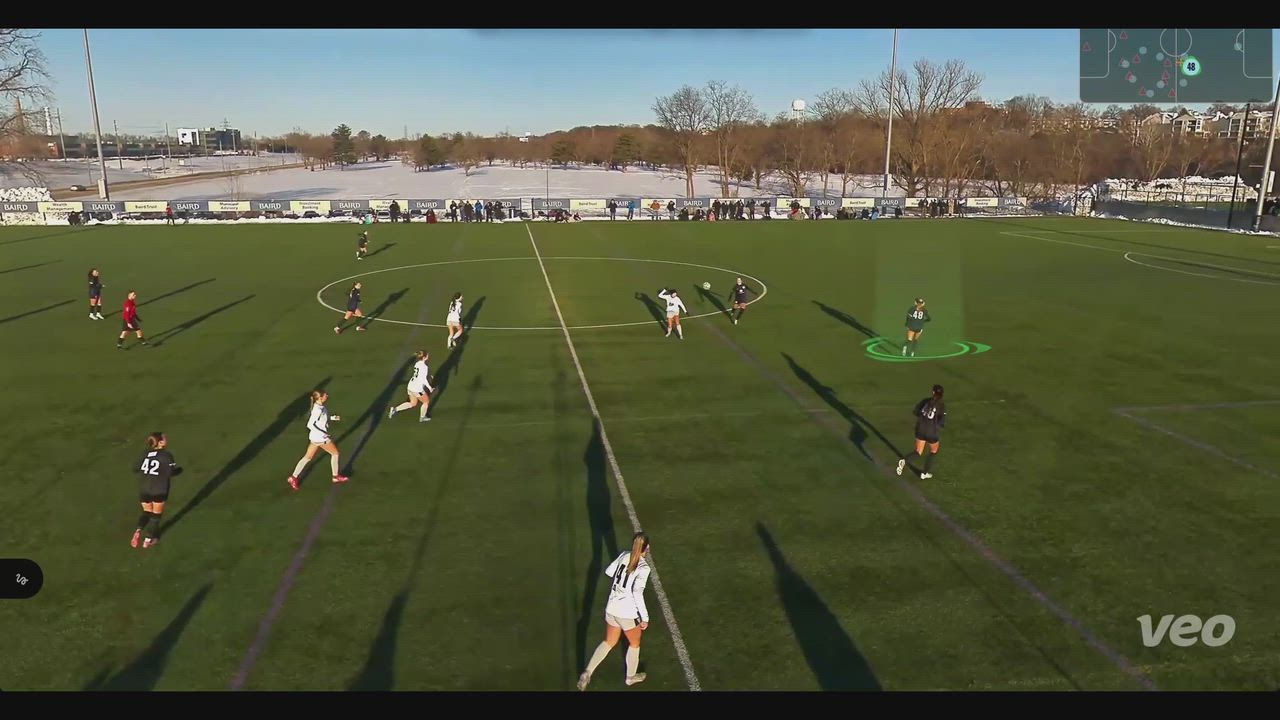 Focused on winning possession in transition, quickly distributing the ball forward, playing strong and composed on the ball, creating attacking opportunities, and serving a corner to the back post.