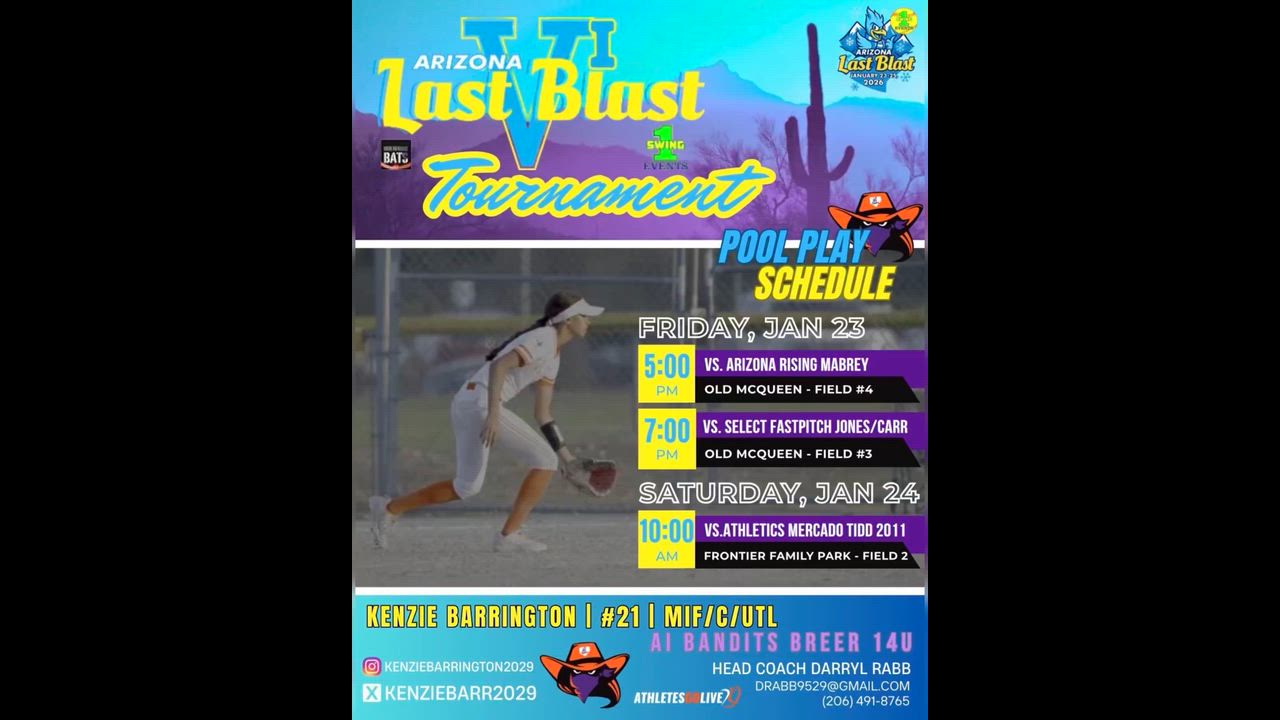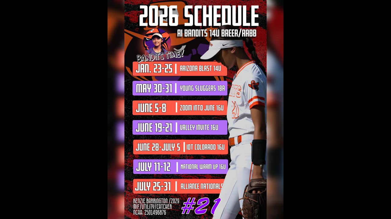 Come join my team Ai Bandits 14U Rabb/Breer in our first out of state tournament for the 2026 season.