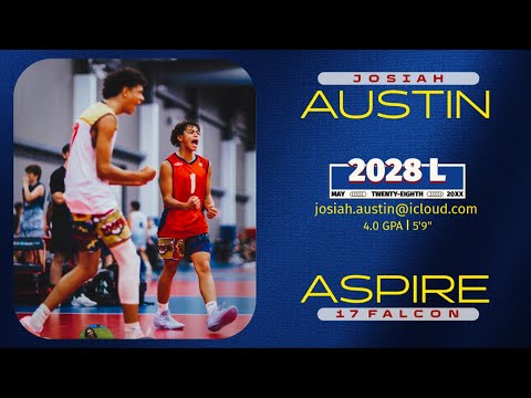 Video Breakdown Serve Receive 1:12 Defense 2:07 OOS & Serves 2:39 Josiah Austin │5’9” Libero │Class of 2028│ 4.0 unweighted GPA Club: Aspire 17 Falcon, #1 High School: Homeschooled│Mountain View (Mesa) Instagram @josiahaustin.vb High School Class of 2028 Libero from Arizona │Volleyball Highlights