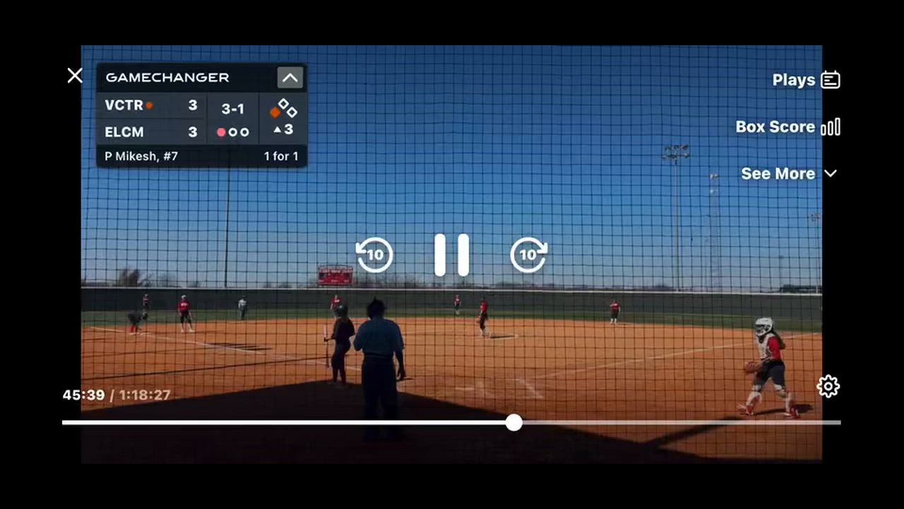 Peyton Mikesh hits hard ball to center field for an rbi double and out at third