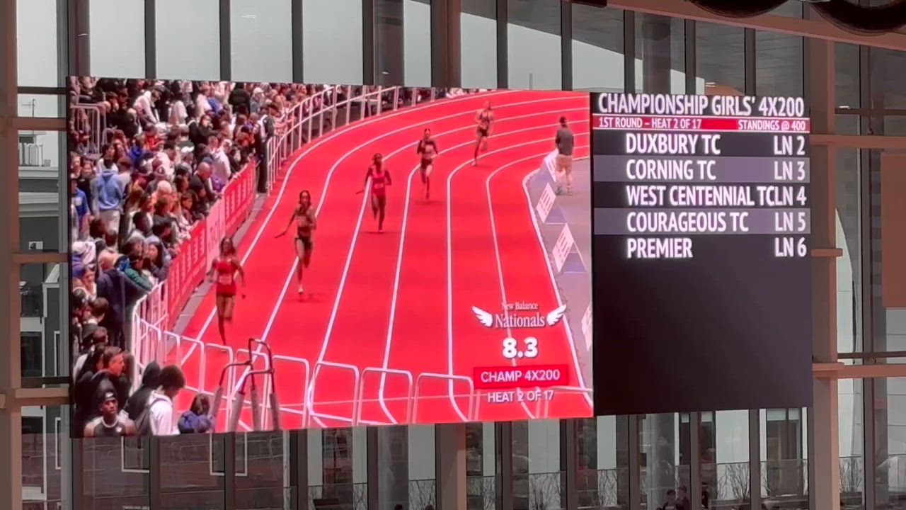 Competing at New Balance Nationals for Indoor track in Boston. Racing the 4x200 relay and running a time of 1:44.44 minutes.