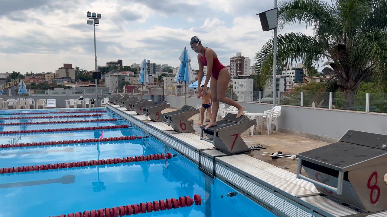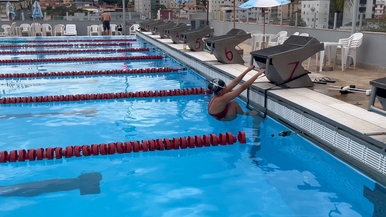 I'm the first athlete on the left. Crawl swim 50 meters.