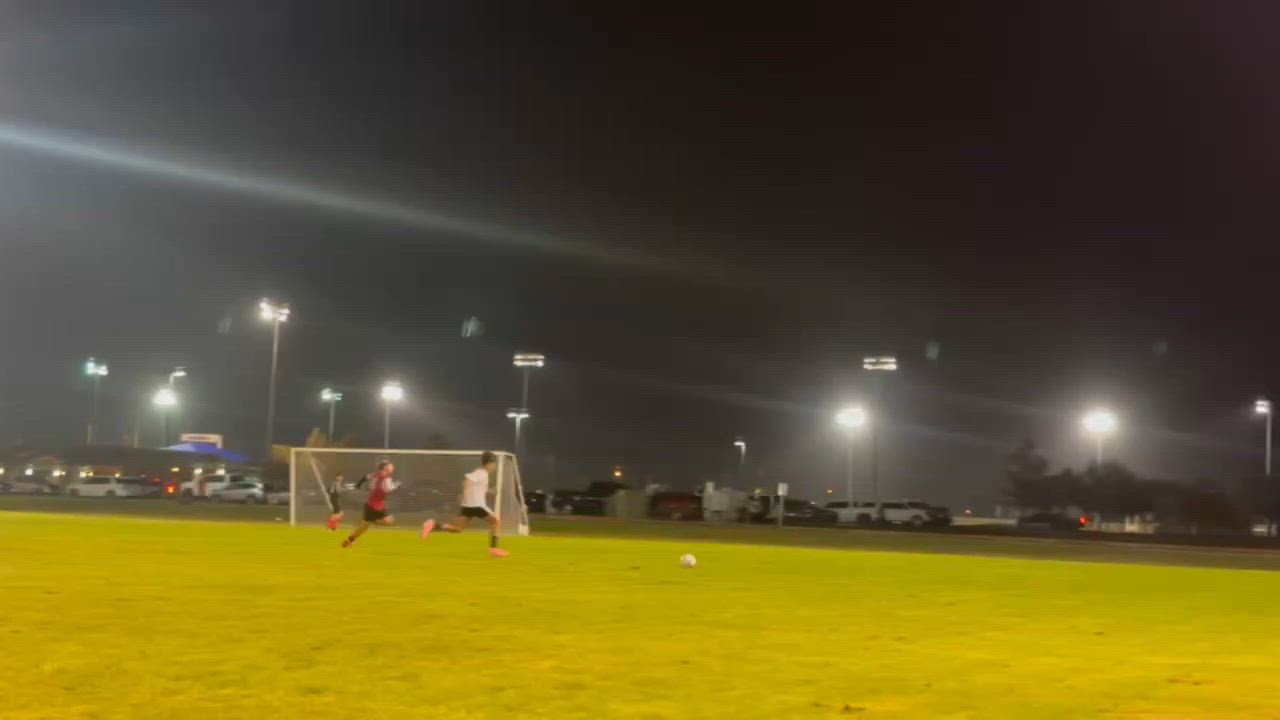 23 wins 1v1 and crosses the ball, then fights to try and win ball back
