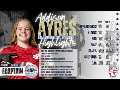 2025 All Section 2025 All WPIAL (District) 14 Shutouts to break single season team record 2025 Westmoreland County Player of the Year Finalist 2025 Moe Rosensteel Classic Player of the Match 2025 Moe Rosensteel Player of the Year Watchlist (District)