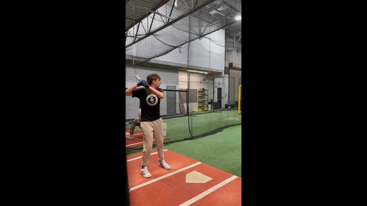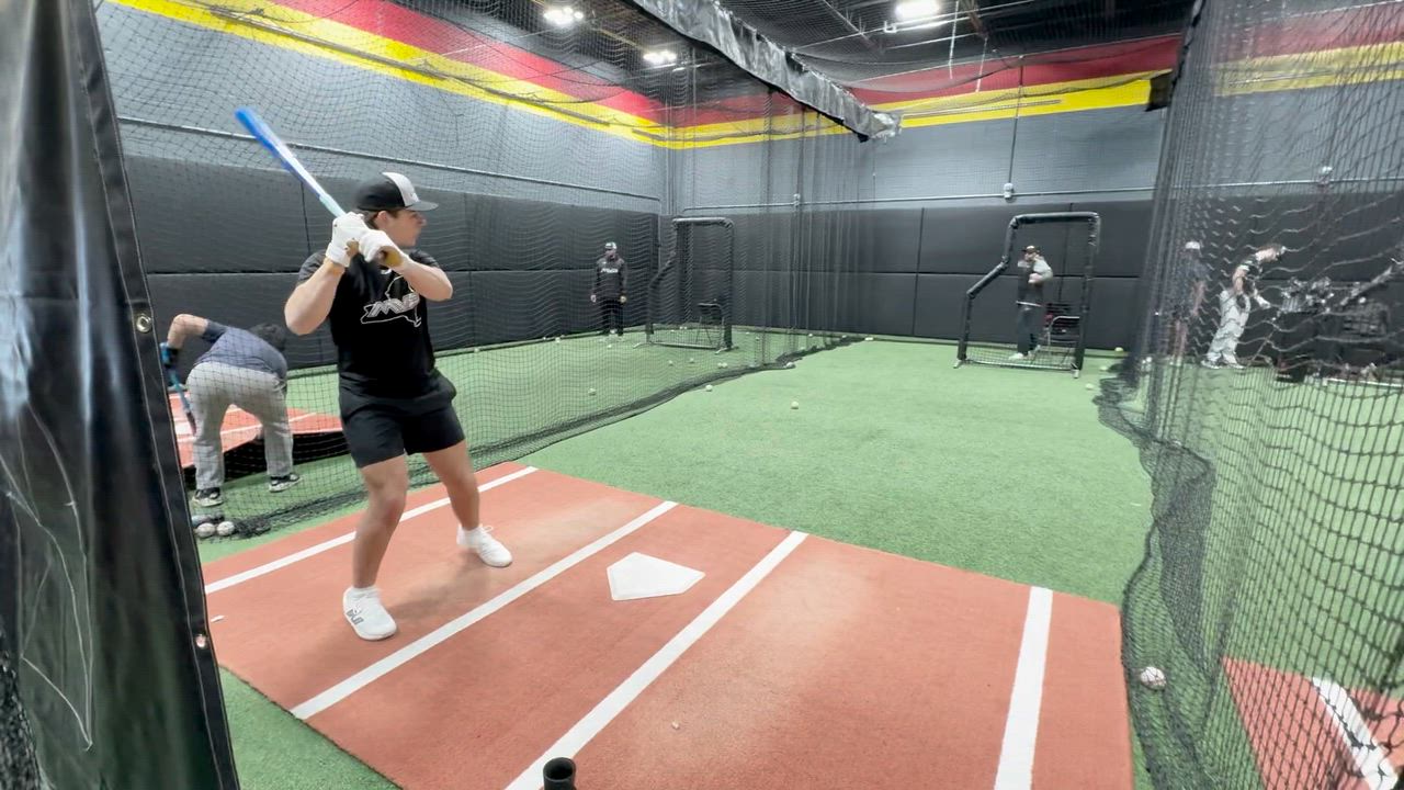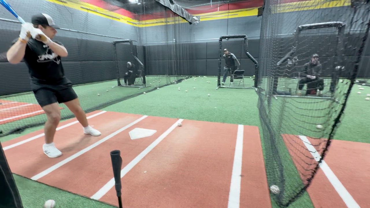 Side view overhand batting practice at MVP Baseball winter workouts