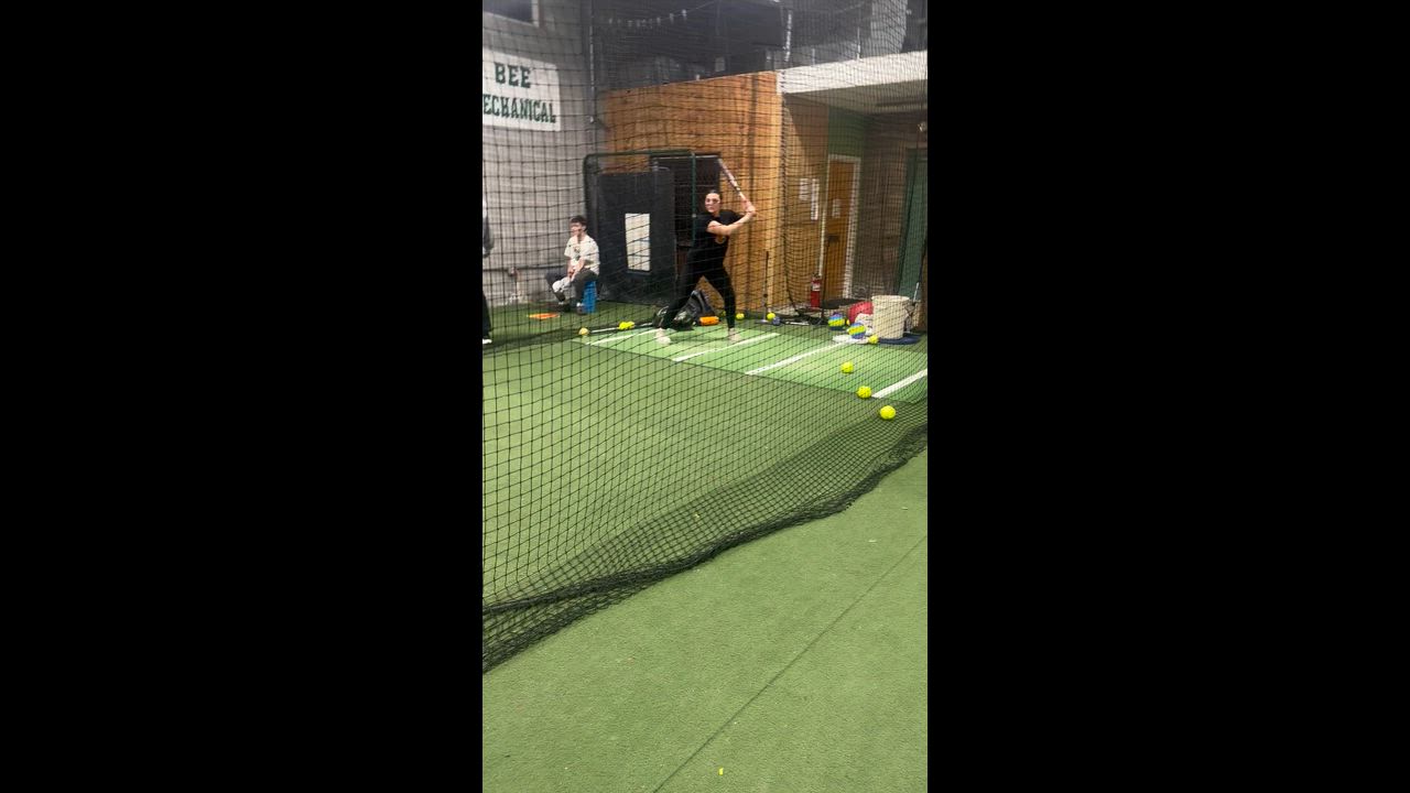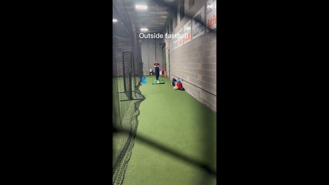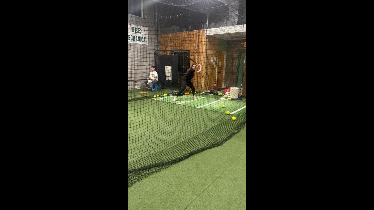 BP with Coach CJ. Working on bat path and hitting balls to left center (outside pitches).