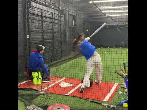 Batting with Coach CJ. Working on bottom half (legs), staying on ball through the zone and outside pitches.