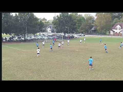A tackle (on ball) recovery from a failed pass to keep possession for my team. Im #14 in blue