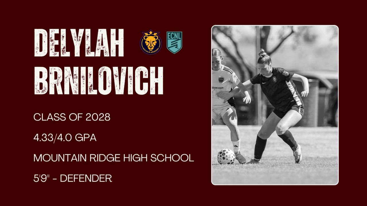 Delylah Brnilovich - Utah Royals FC-AZ ECNL 10G Jersey #16 Class of 2028 - Defender 4.33 Weighted GPA; 4.0 Unweighted GPA Instagram: @delylah.brnilovich
