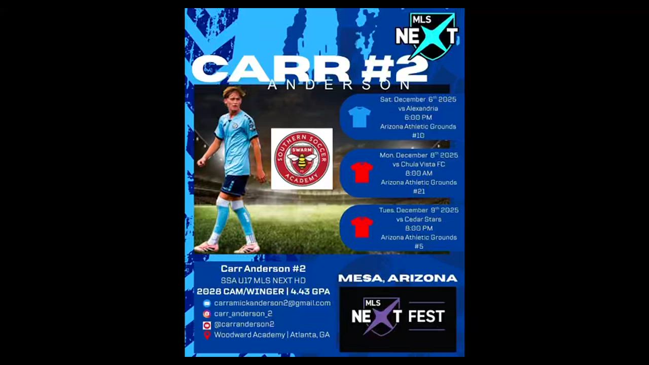 Dane Noren’s highlights from game 1 vs Alexandria SC at MLS Next Fest 2025 on December 6, 2025 at Arizona Athletic Grounds.