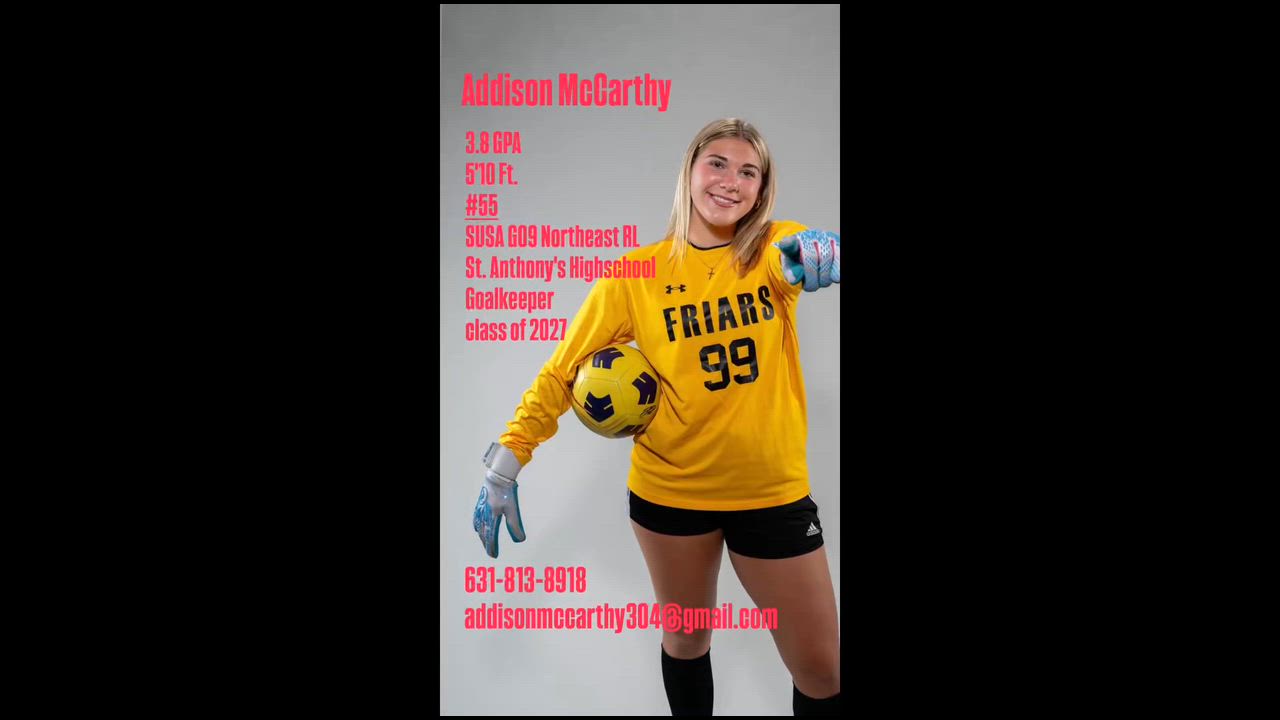 Audrey Donnelly Class of 2028 | Wingback SUSA G09 ECNL RL Northeast 5'6" | Right-Footed | GPA: 4.0 Club Coach: Necati Coklar necati@susaacademy.com | 646-420-2997 Girls Technical Director: JR Balzarini jr@susaacademy.com | 631-252-9452 Player Email: audrey.donnelly14@gmail.com