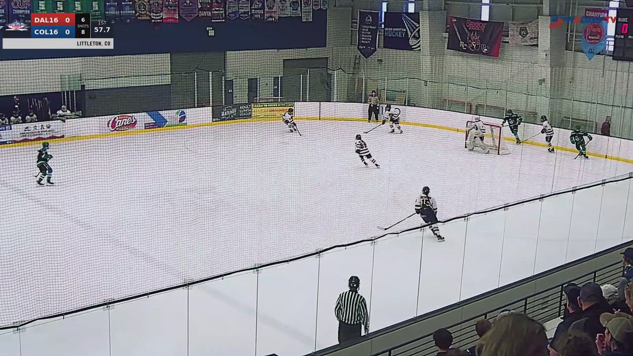 27 - White: Hard net drive for a rebound goal