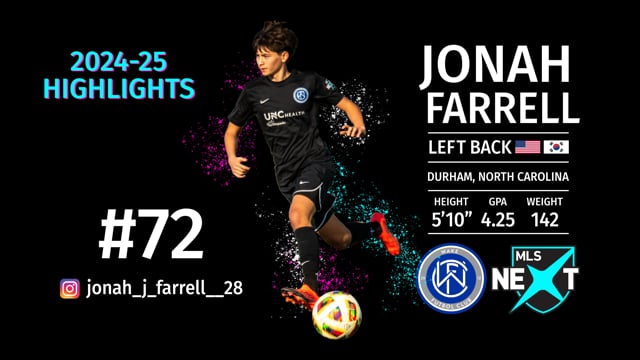 Highlights from Jonah Farrell's 2024-2025 season with MLS NEXT at Wake FC in Holly Springs, North Carolina.